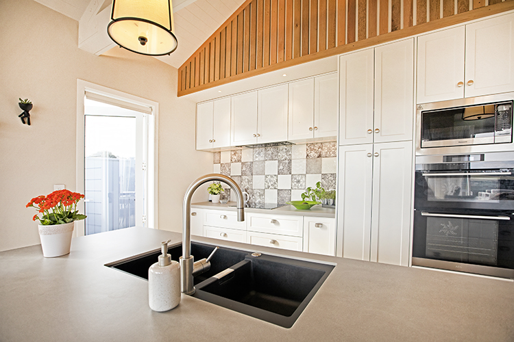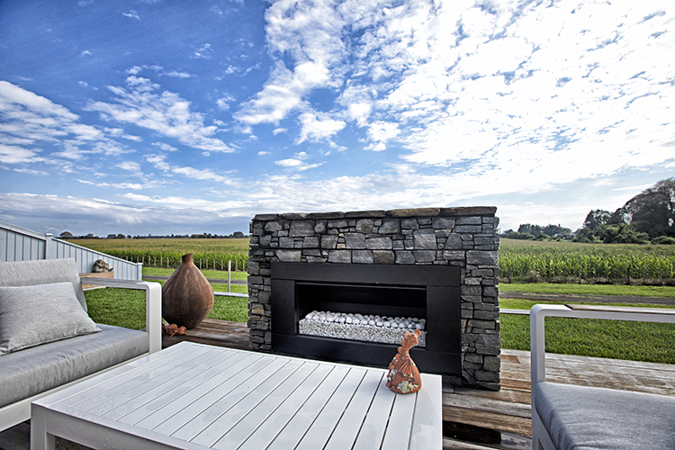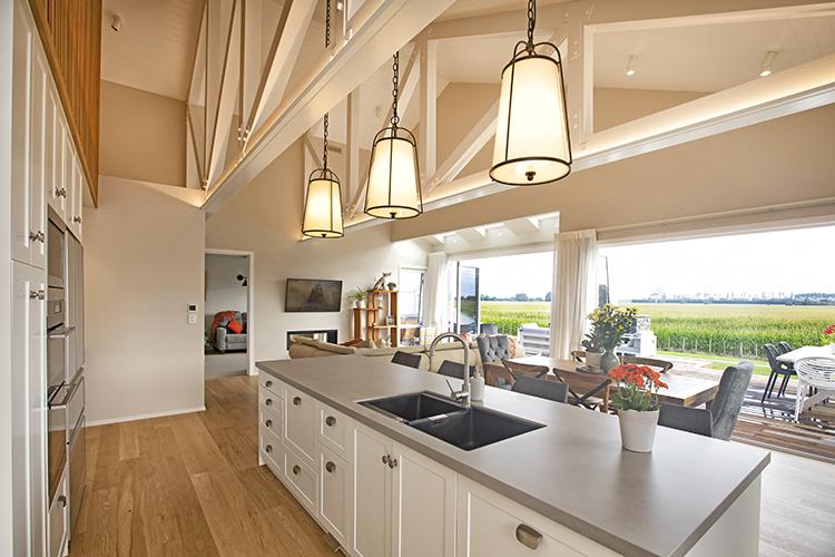 This home features a modern living layout with a country villa style designed for their lifestyle and maximising the rural vista views. The exposed trusses were built onsite and the villa board ceiling gives a timber panelling effect throughout the main kitchen/living area. The use of box corners, window sills and facings give the double glazed joinery the unique illusion of old fashioned timber frames. The kitchen features a totara batten feature wall bringing warmth to the open plan layout which combines the charm of a country style kitchen with the convenience of a modern layout. A double sided internal fire place gives a warm ambient glow to both living areas. The bathrooms feature a free standing bath with custom made timber vanities to extend the country theme throughout the home. Outside you are entertained by not only the views but the large decked area, spa and outdoor fire which is covered with schist. The Back Country Builders team enjoyed the challenges this build presented. The owners and the team are equally impressed with the finished project.