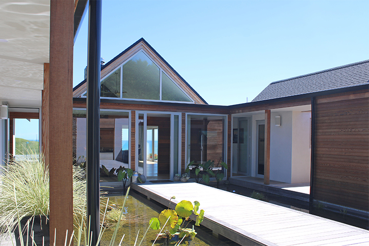 A country setting on top of a hill looking out over the Waiotahi pipi fields and the ocean. This site was made for something special! A extremely detailed and architectural house was designed and a real challenge to build. With features such as a large man made fish pond in the entrance with a pier to guide you into the house, full 8m high schist chimney, batten ceilings, custom made internal doors made from cedar weatherboards, swimming pool the list goes on and on. With great clients to work with and a crew up for the challenge we completed the project in ten months. With landscaping and gardens established it is definitely a real head turner and a build we are certainly proud of.